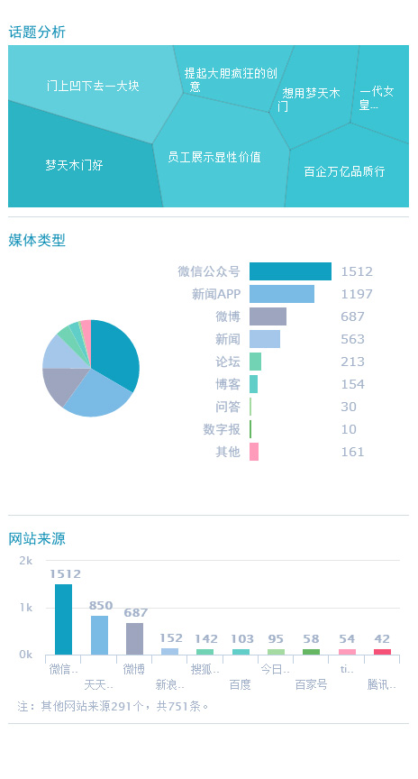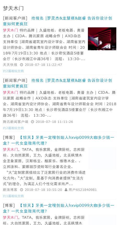 在前期的項目溝通和執行上,助騰團隊對此項目投入了空前的精力和創作熱情,針對夢天木門在互聯網上的口碑信息進行的全面的抓取和梳理。保證品牌在互聯網信息內容展示上能以更好的形象展示出來,同時結合競品投放信息和渠道進行分析,在相關競品可以觸及到的點上進行夢天木門的品牌信息曝光,提升網絡覆蓋面。