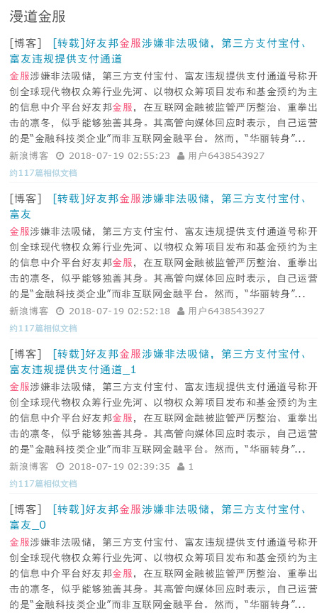 漫道金服項(xiàng)目主要為客戶提供口碑信息優(yōu)化服務(wù),針對(duì)互聯(lián)萬(wàn)上不實(shí)發(fā)聲信息進(jìn)行投訴處理。日常工作主要是正面信息引導(dǎo)及發(fā)布,提供企業(yè)在互聯(lián)網(wǎng)上面良好信息露出,保證用戶在搜索漫道金服關(guān)鍵詞時(shí)可以展現(xiàn)出正面信息,以及公司最新新聞活動(dòng)信息內(nèi)容。