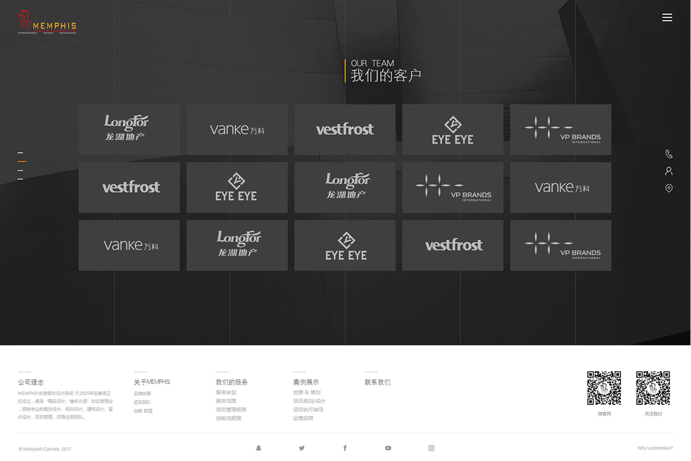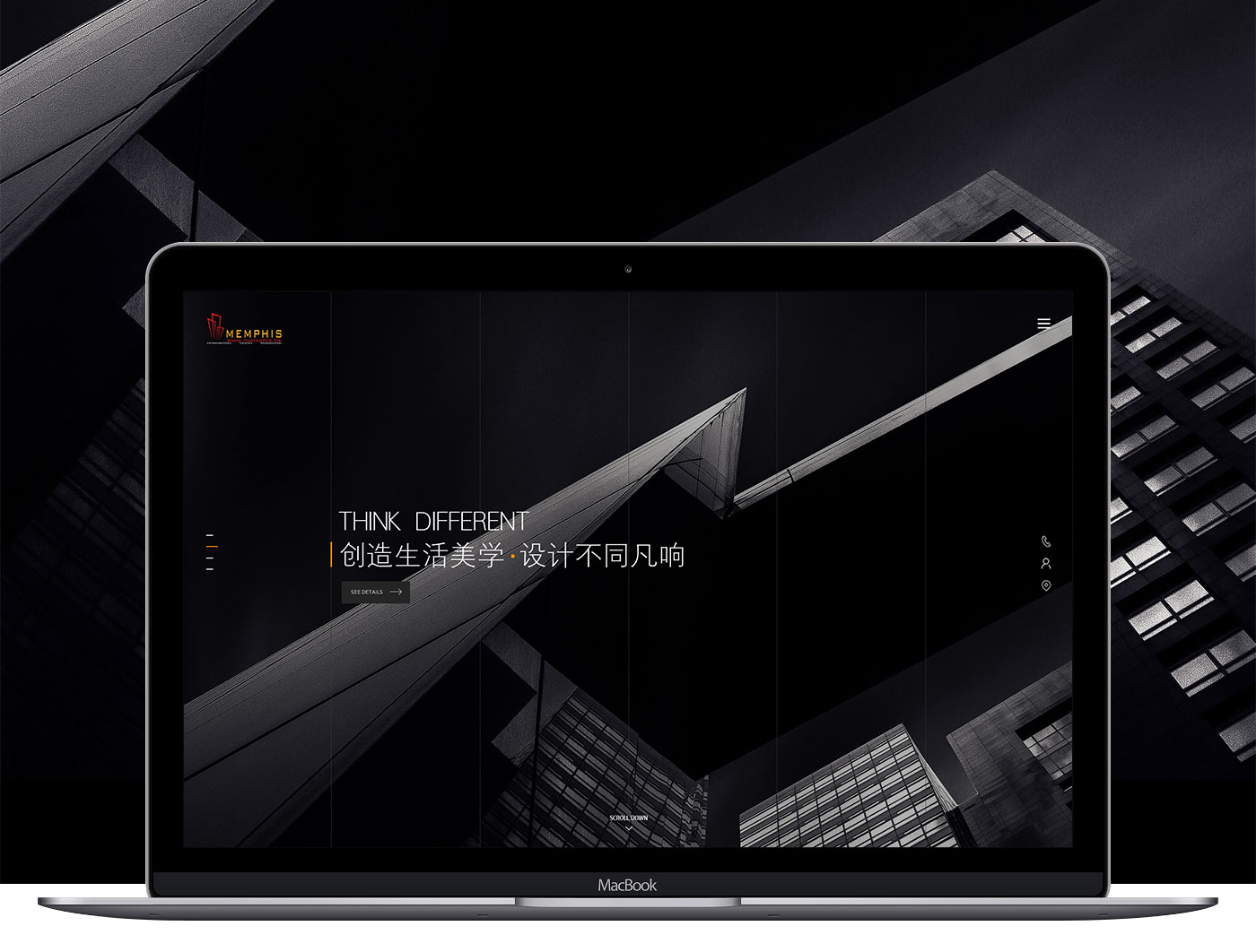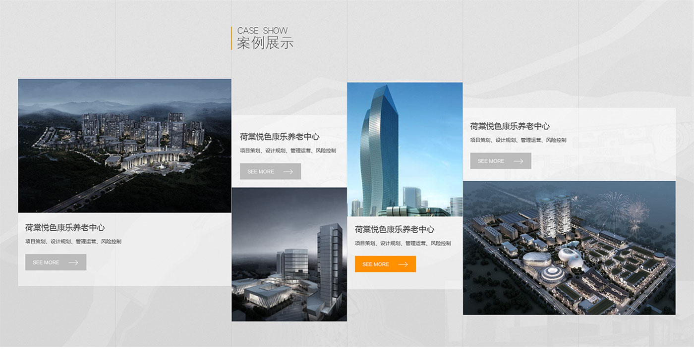 結合建筑設計行業特性,整體網站以線性進行輸出,黑色為主色掉,網站的LOGO黃色為輔助色。是整個網站看起來更加沉穩,同是黃色的點綴又多了一些生機。